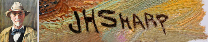 Unfortunately, Sharp would never completely recover from his accident. His hearing was damaged and would continue to deteriorate rapidly, eventually leaving him utterly deaf. At this early age, Sharp's indomitable spirit was already manifest, as he never for a moment let his handicap hold him back. He learned to read lips and began to carry a pad and pencil with him wherever he went, never once losing his optimistic outlook on life. It was around this time that he began to realize that he had a natural facility for drawing, and he sketched often in the outdoors.
