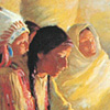 Sharp's first trip to the West was in 1883 at age 24. He visited pueblos in New Mexico (though not Taos), Santa Fe, Albuquerque, Tucson, and then took a boat up the West Coast and disembarked in the Washington Territory. In the northwest he encountered natives from numerous tribes, and the sketches he did on that trip would be the basis for his first Native American portraits. His love of the West notwithstanding, Sharp seemed to feel that his studies were never really over, and he again set off to Europe. He went to Germany, Italy, but spent most of his time in Spain, studying the Spanish masters El Greco, Velazquez, and Goya.